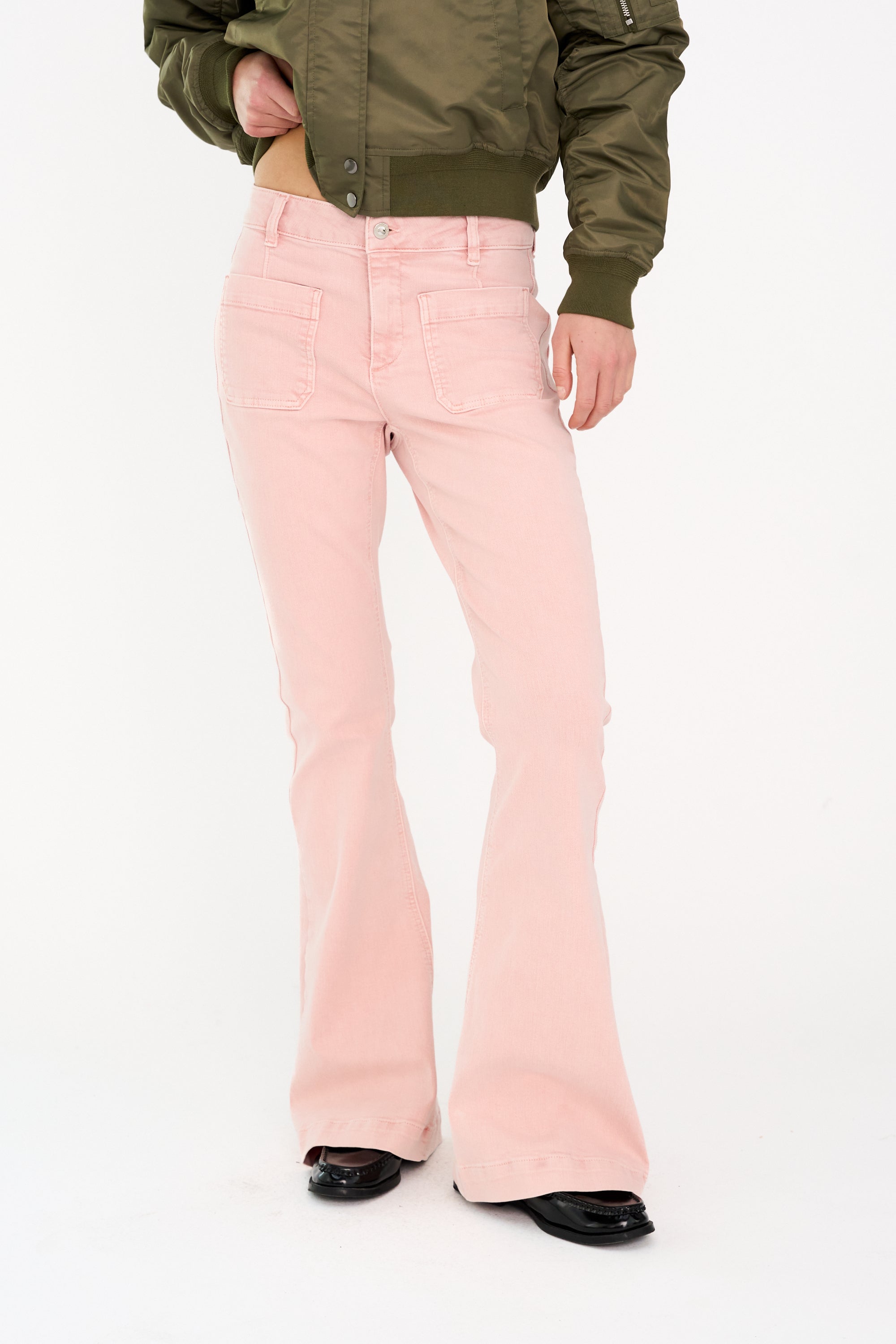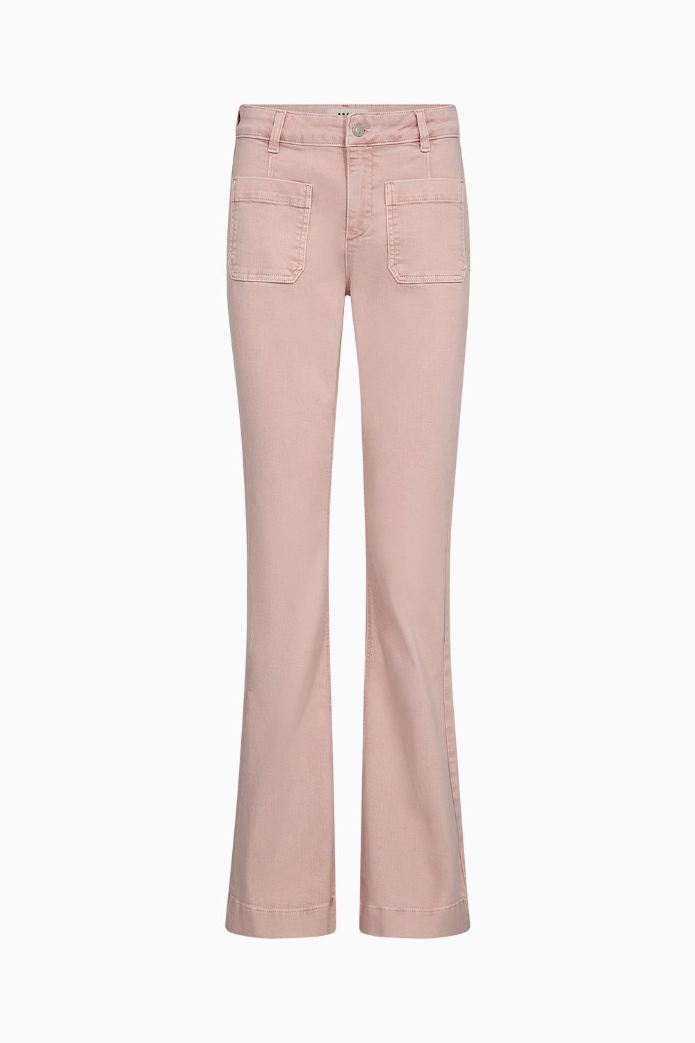 Ann Charlotte Jeans brings a fresh twist to the classic flare silhouette with a statement front pocket design and a bold, feminine tone. The soft rose blossom wash adds a playful pop to your denim rotation, while the mid waist and slim fit enhance your natural shape.