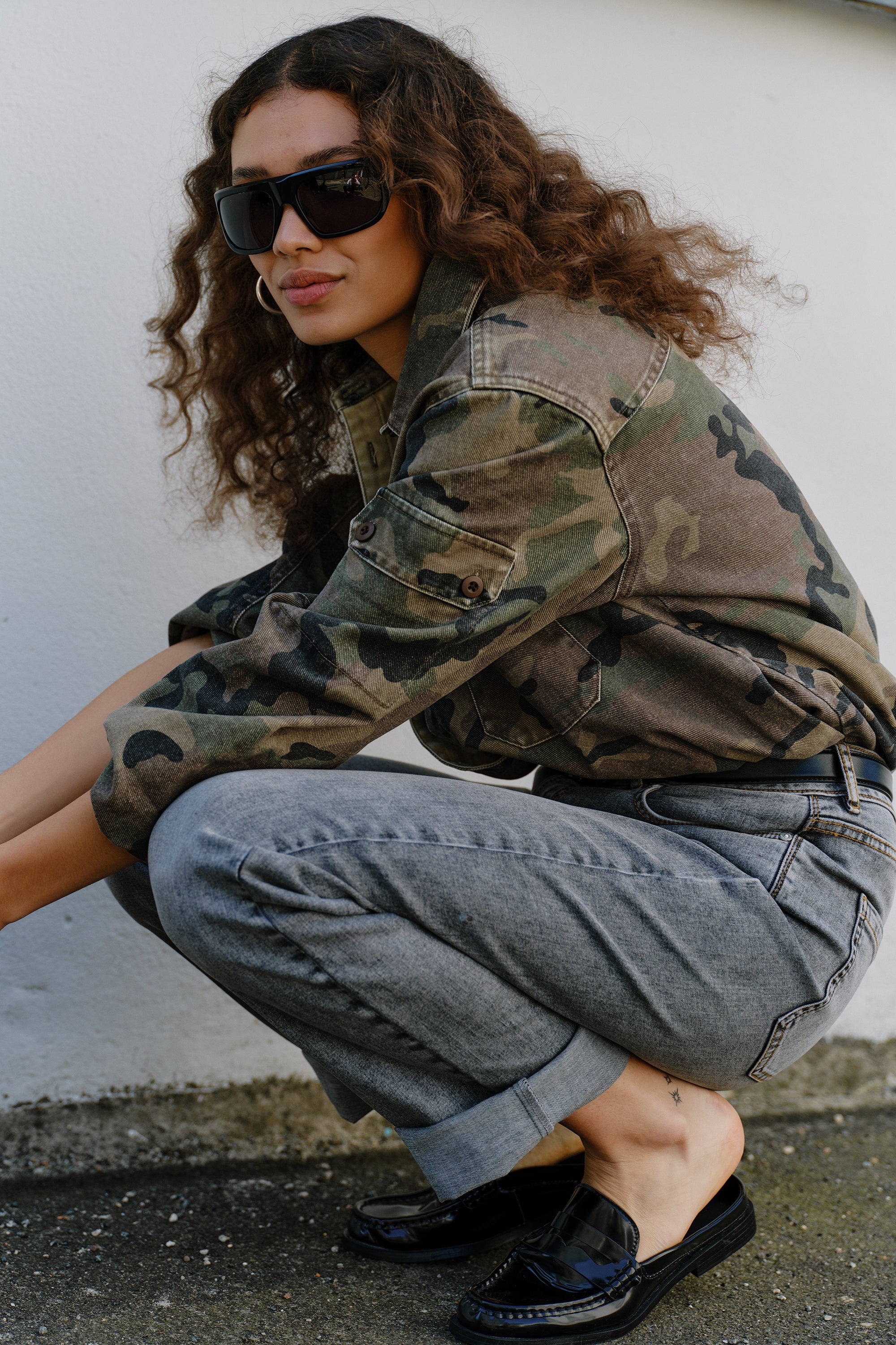 • Washed camouflage print