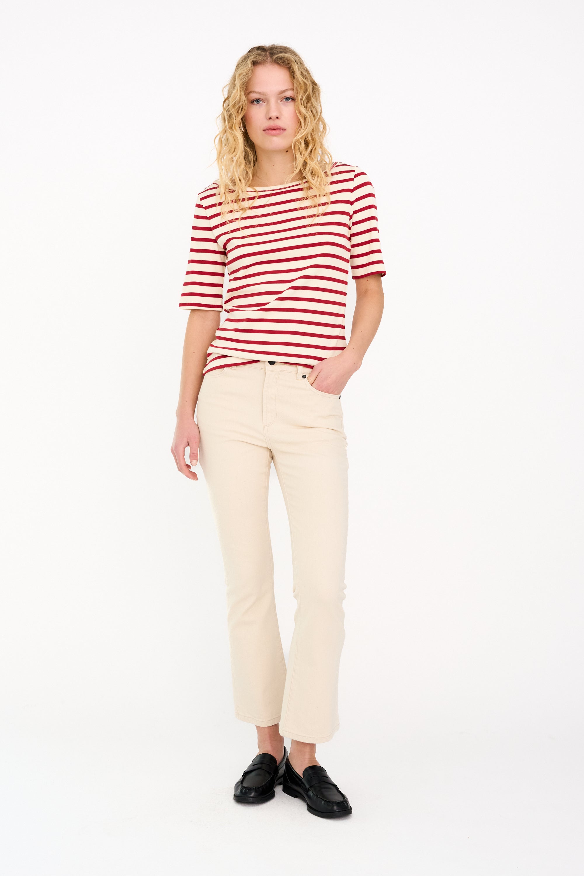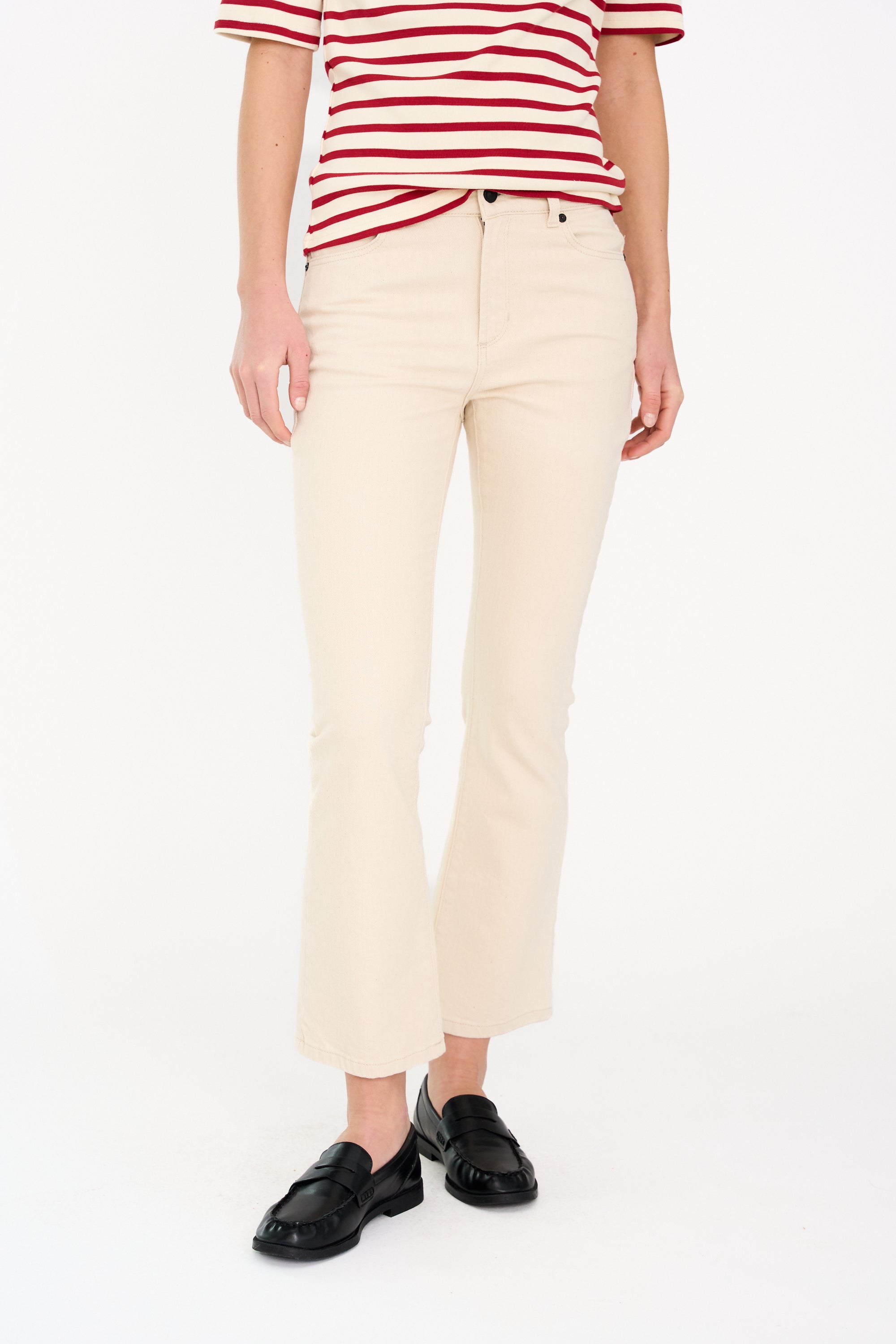 The Johanna Kick Flare Jeans are a soft nod to retro with a modern fit. They sit mid at the waist, hug through the hips, and gently flare at the ankle – a silhouette that lifts and elongates without trying too hard. The clean ecru wash keeps it fresh and minimal, ideal for tonal dressing or a crisp contrast look.
