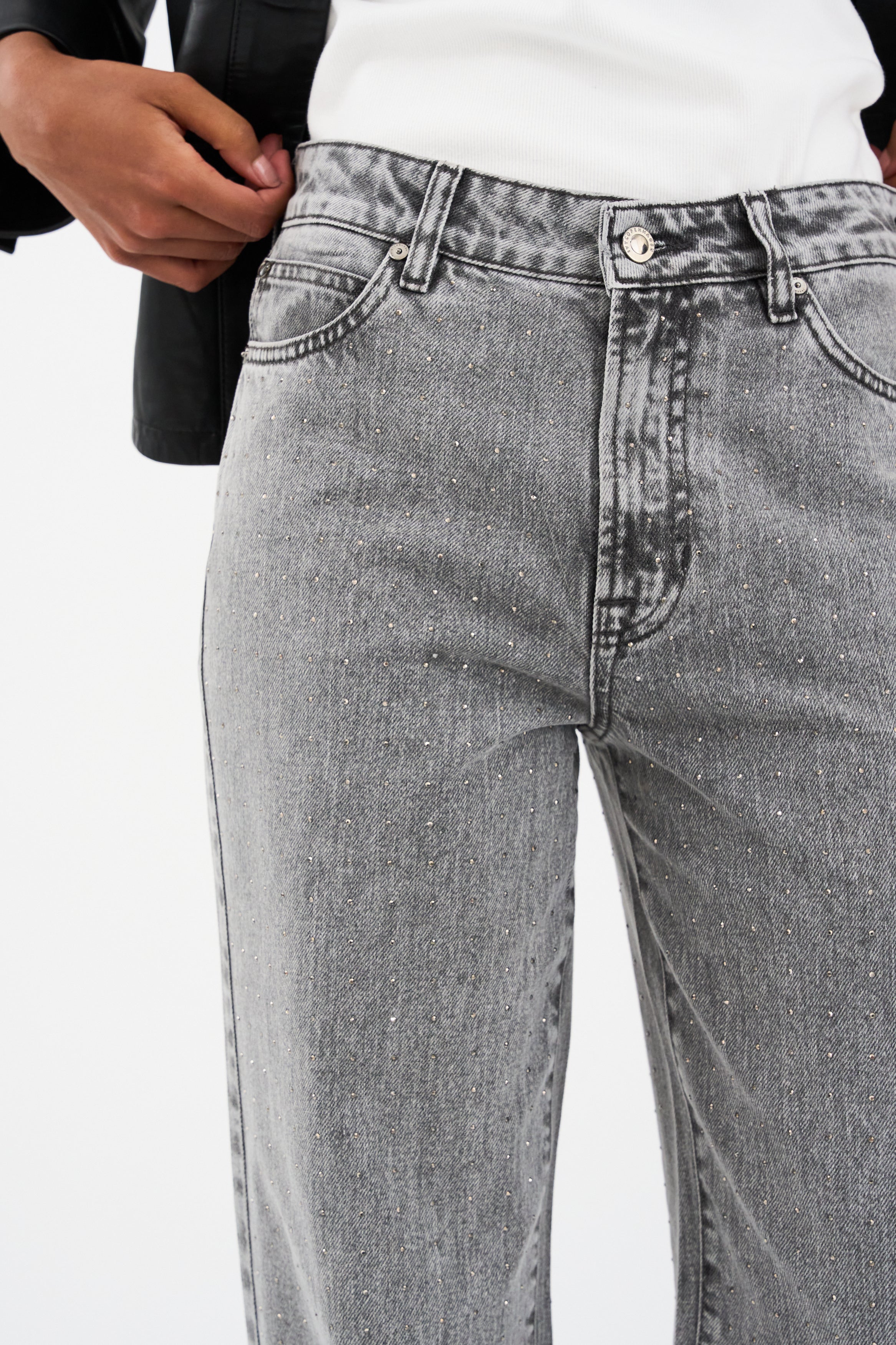 IVY-Mia Stud Jeans Wash Faded Grey