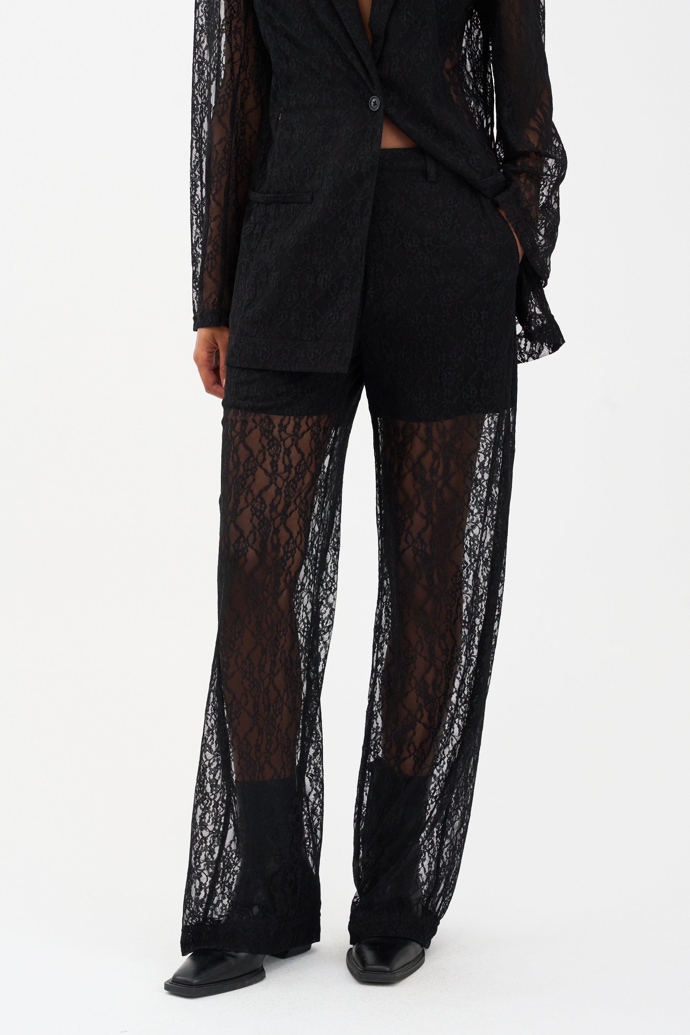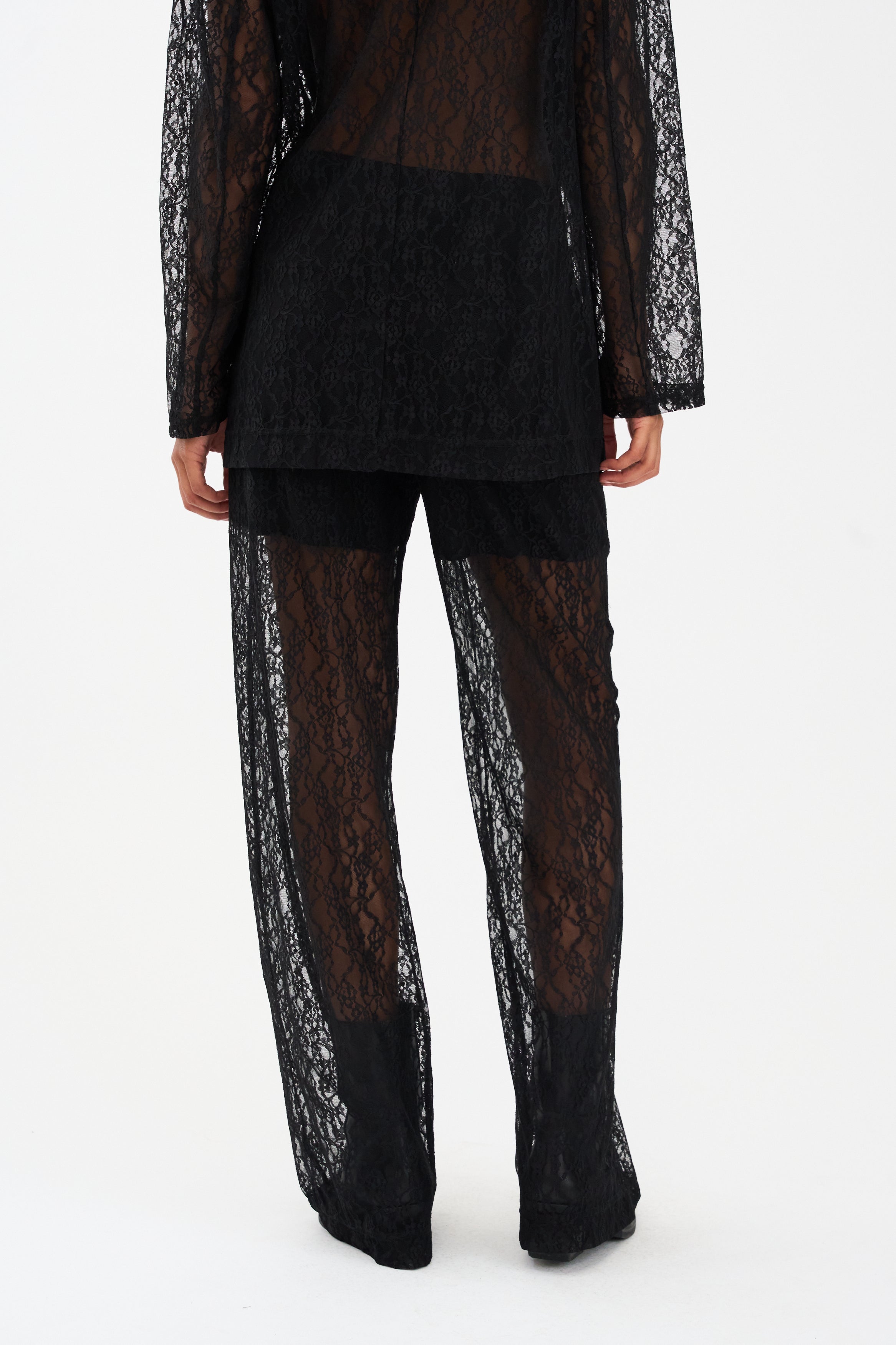 Dare to go sheer. The Lara Lace Pant blends elegance and edge with its floor-length silhouette and bold see-through lace design. Fully lined at the top for coverage where it counts – and fully transparent from mid-thigh for a striking finish.