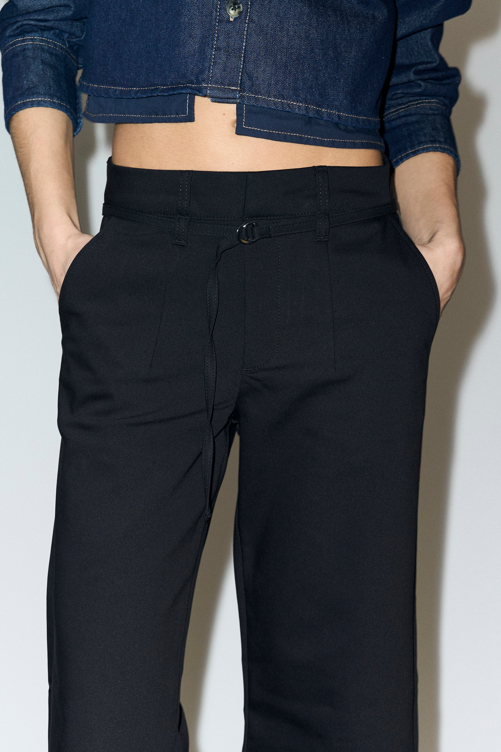 • Belted waist with metal ring detail