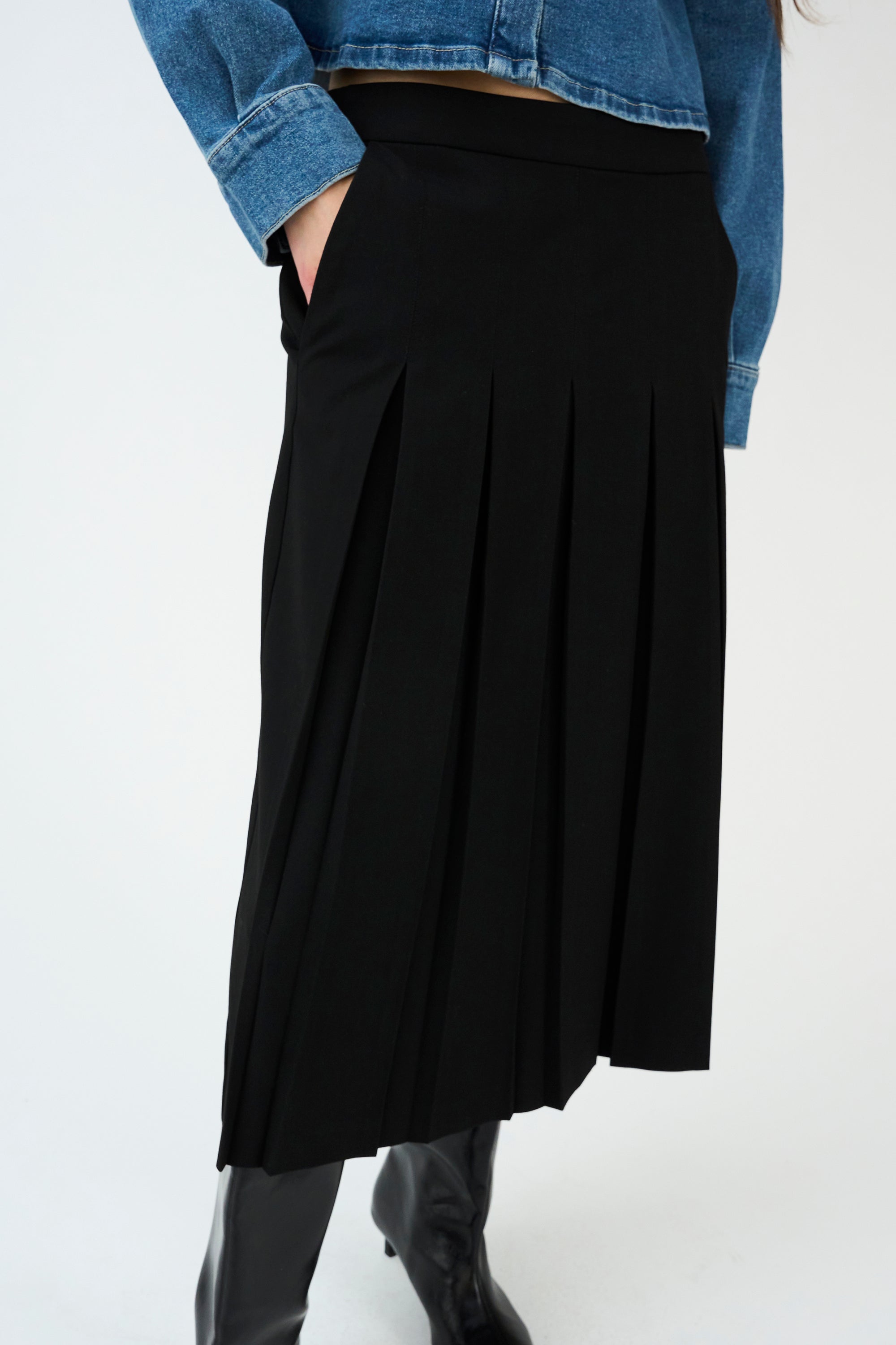 IVY-Andrea Pleat Skirt - Black