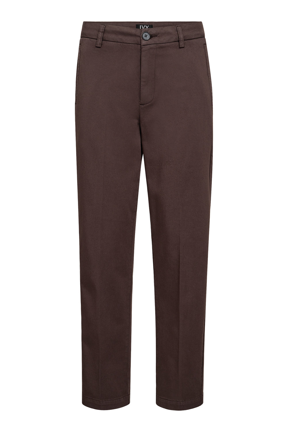 The ankle-length cut, along with front and back pocket details, adds a modern and practical touch to these essential pants.