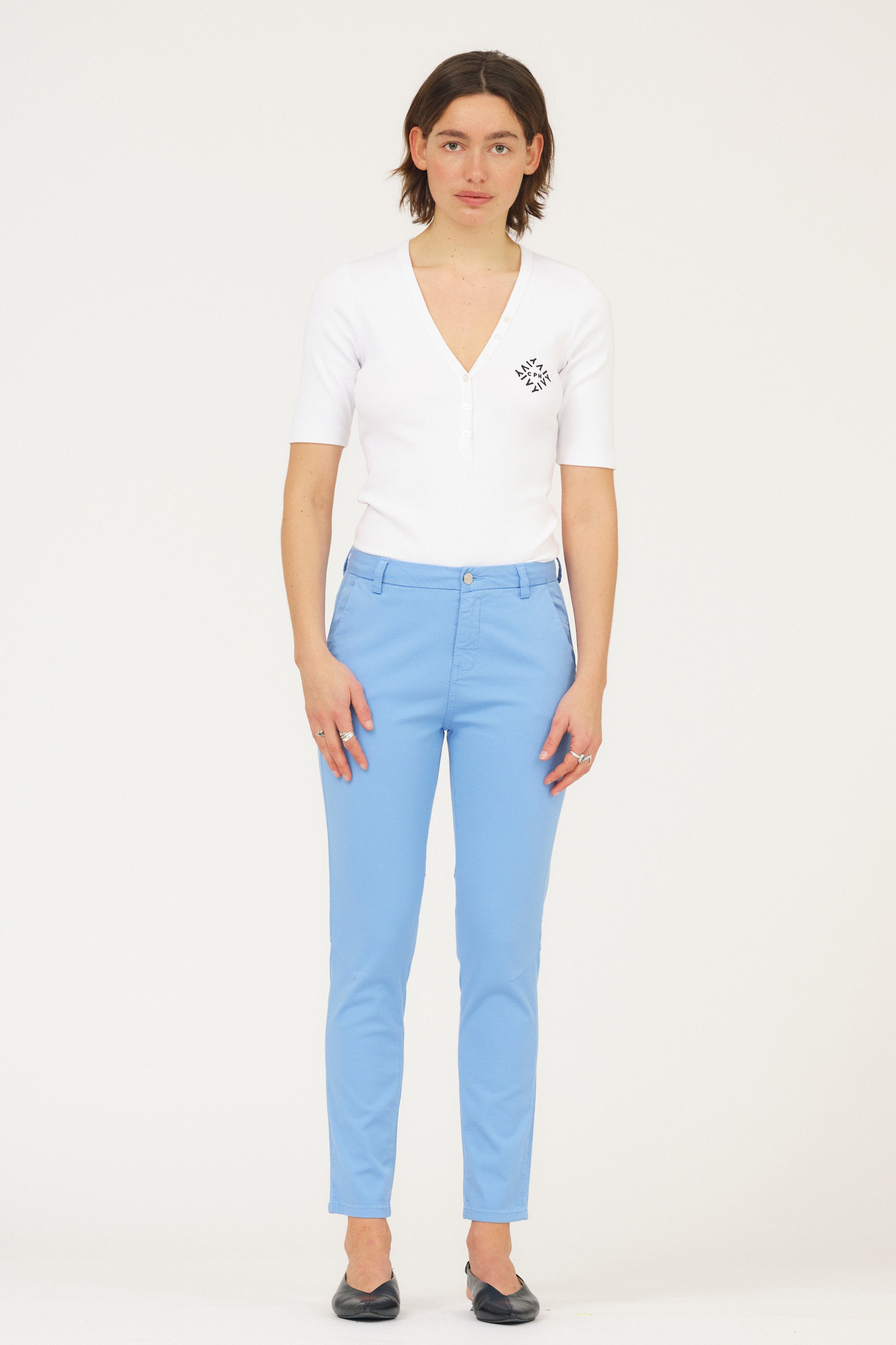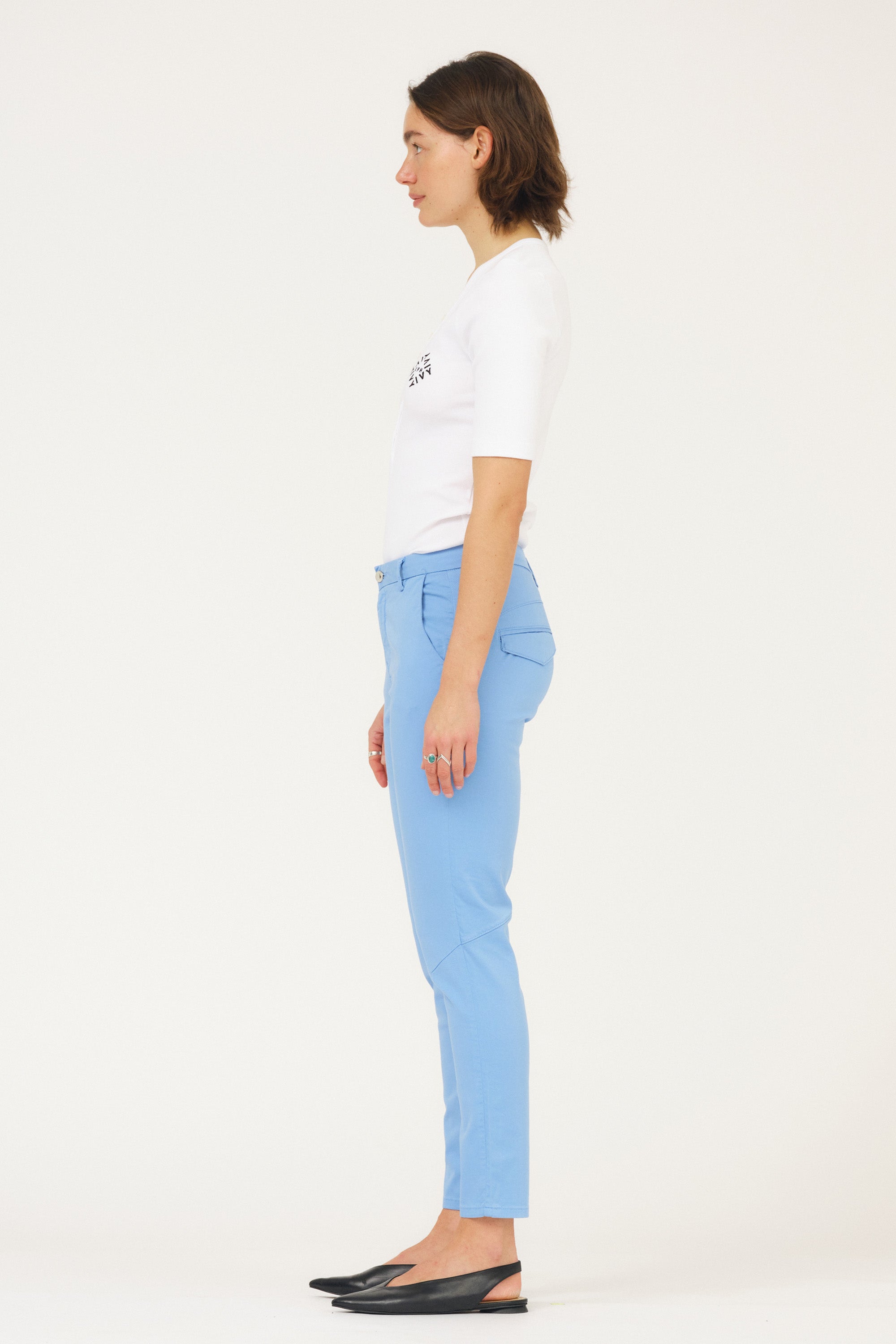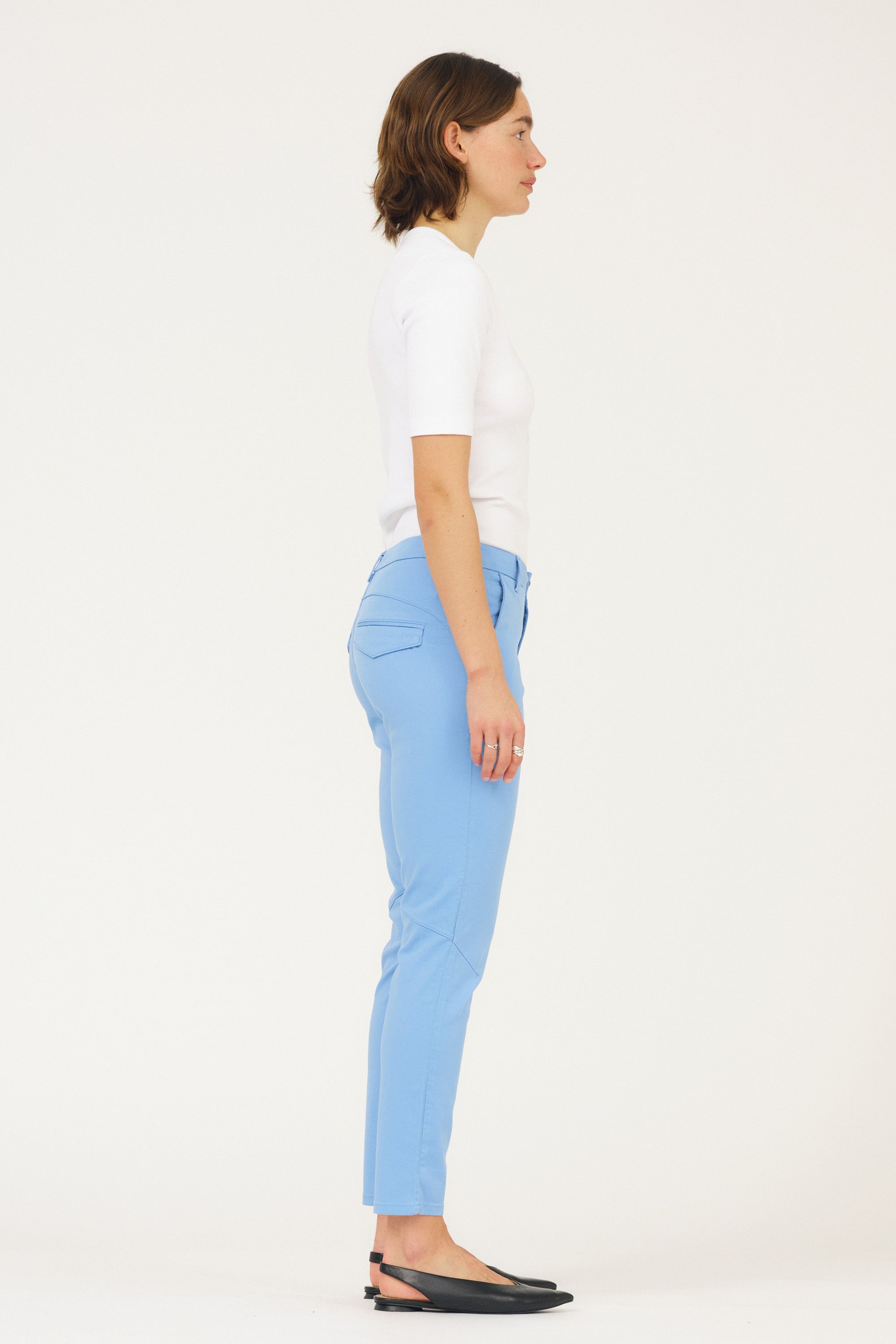 Karmey Chino Color comes in a slim fit with mid waist, tapered leg, ankle length and long rise. Made in a soft and stretchy quality. A relaxed and stylish everyday chino, looking good on all body types.