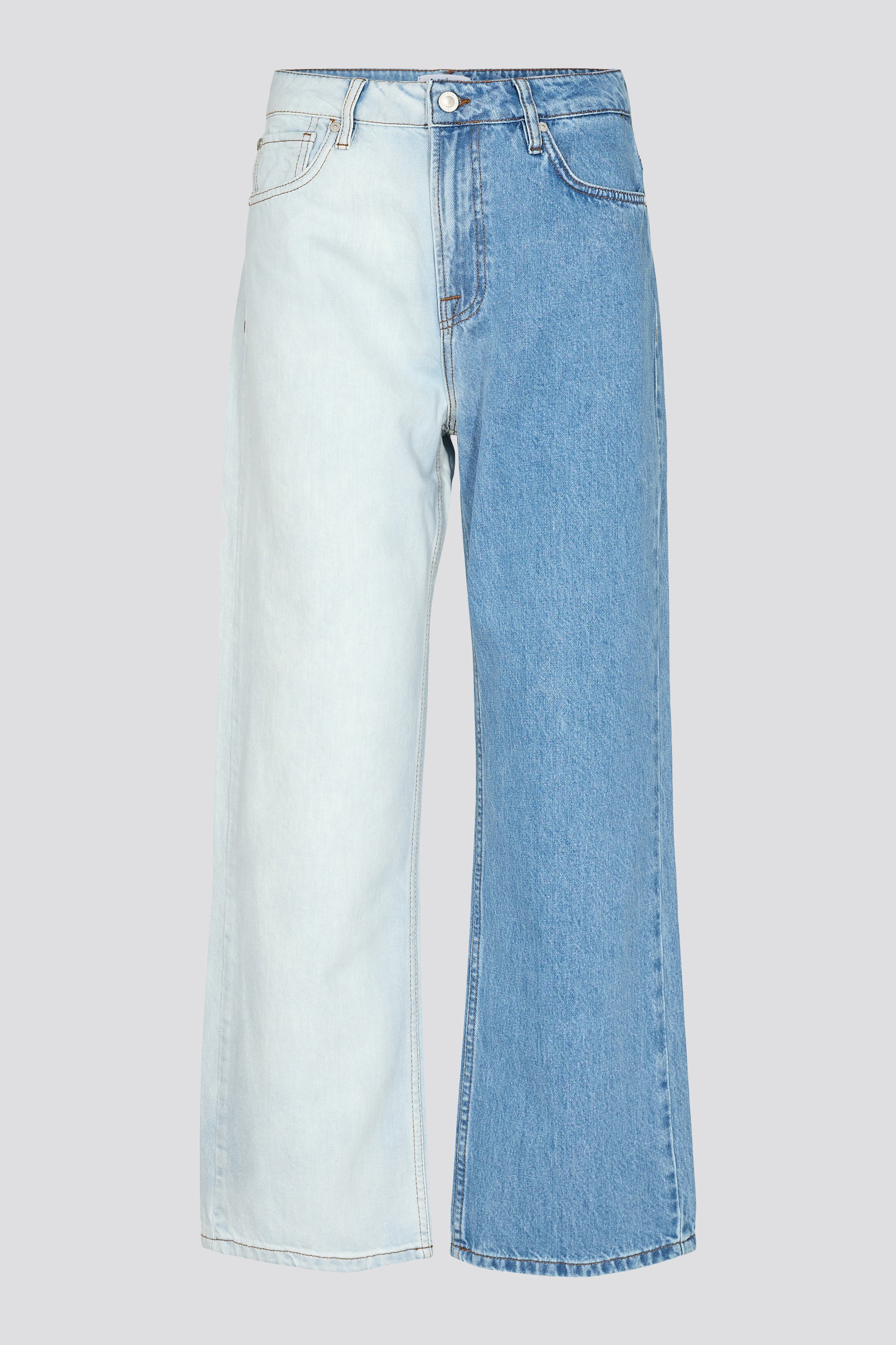 Our Milola jeans in a cool colour block version. It comes with slim fit, ultra high waist and cropped, wide, straight legs. It has five pockets and contrast stitching.