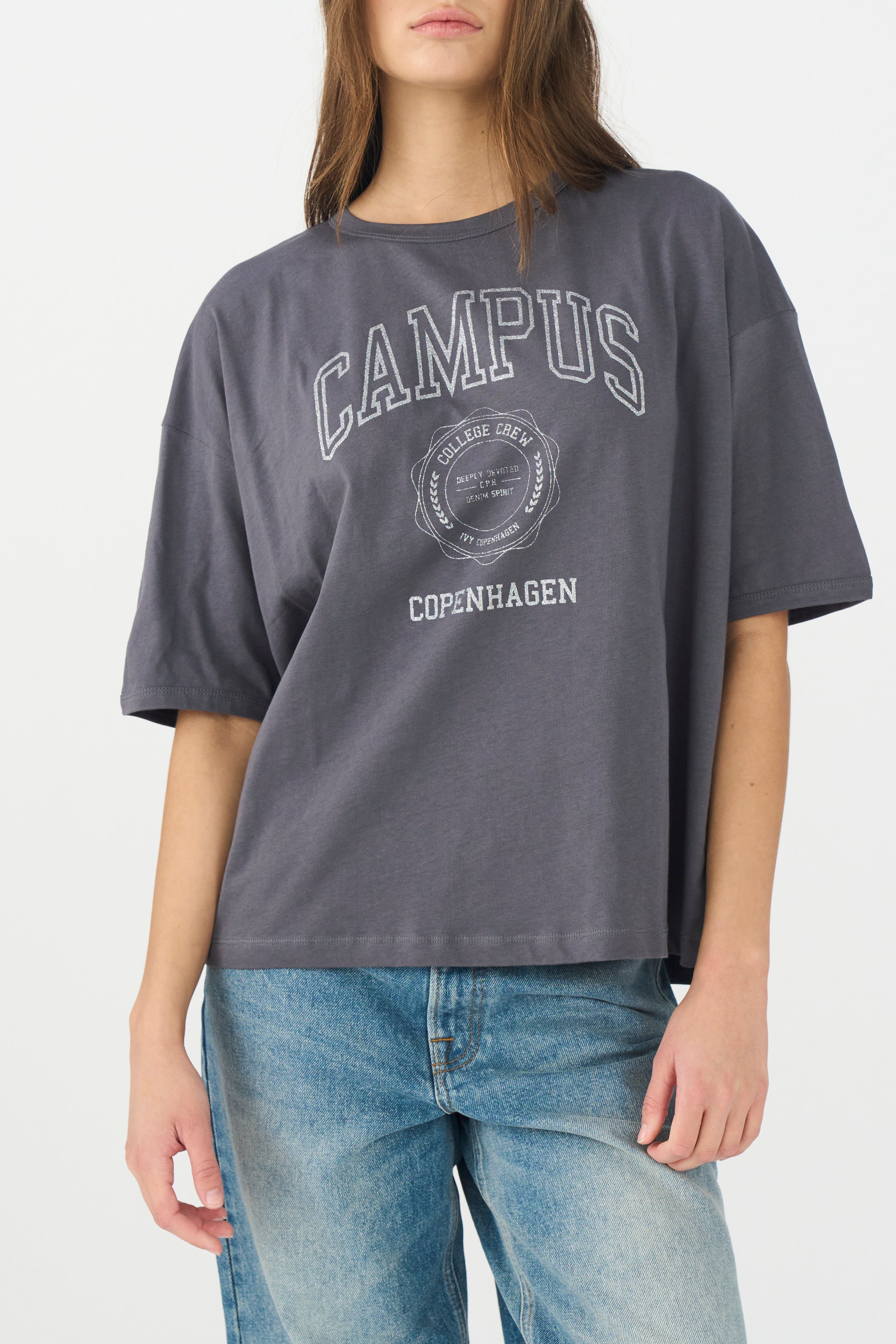 Our Campus T-shirt, your new go-to for casual comfort and style. Made from soft cotton, this tee features a classic round neck and a stylish printed front.