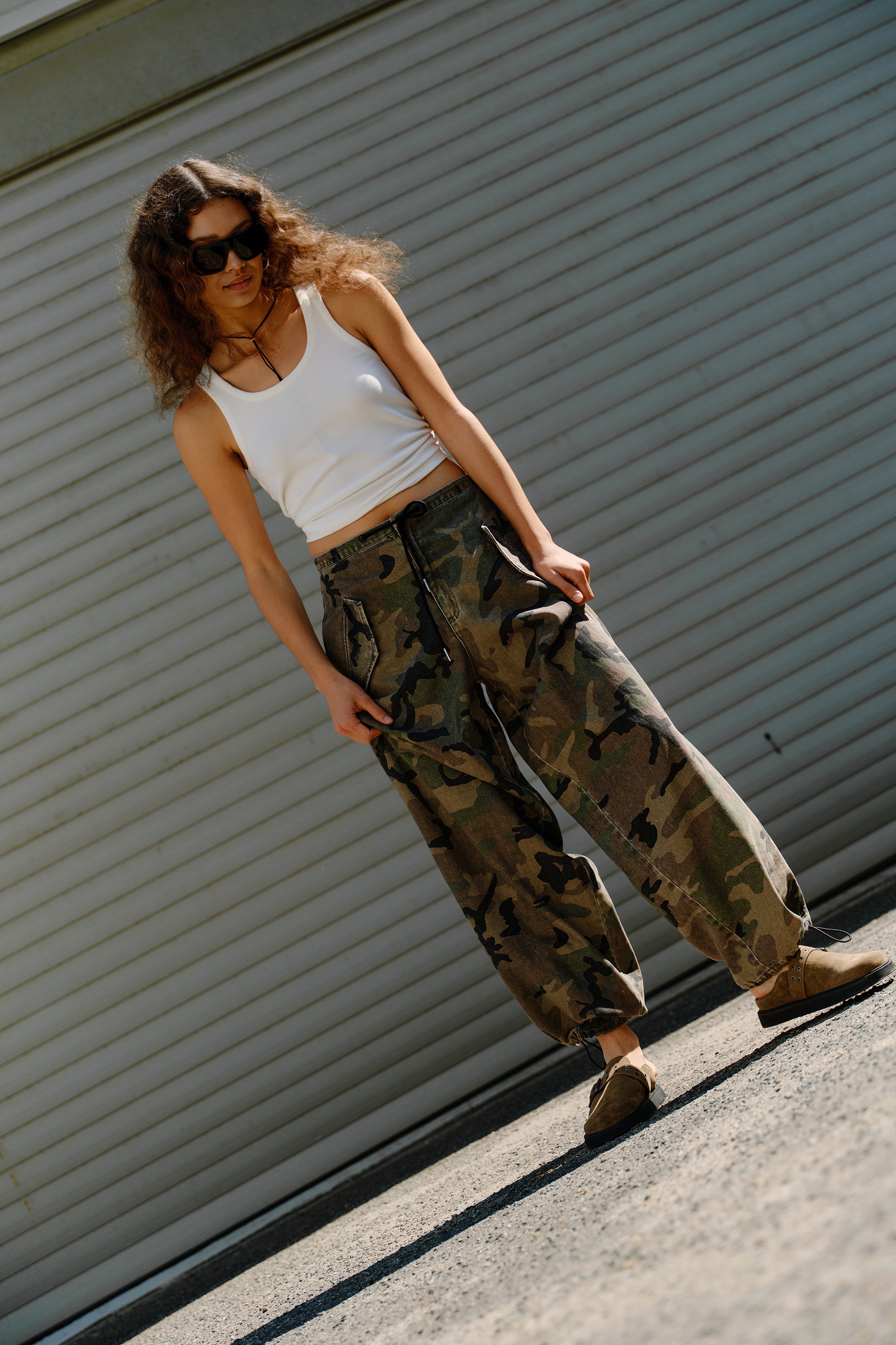 Penny Parachute Pant is your laid-back statement piece – designed in a relaxed silhouette with a mid waist and adjustable drawstrings at the hem. The washed camouflage print adds that perfectly worn-in look, making these pants your go-to for off-duty dressing with an edge.